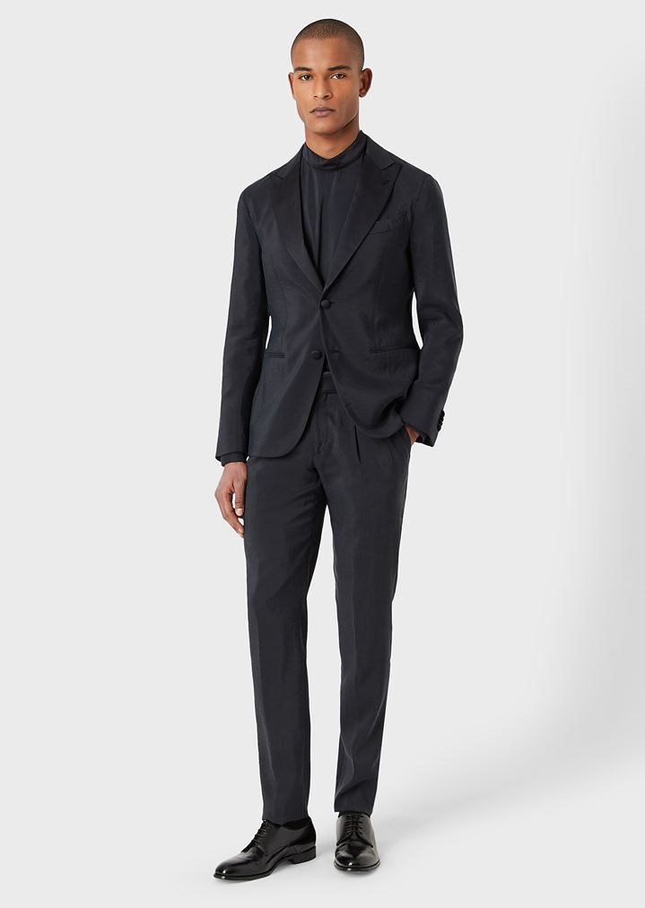 Abito sofisticato Linea Soho che coniuga i dettagli della tradizione sartoriale con tessuti ricercati e pregiati che sottolineano l'immagine contemporanea del modello. La giacca, dal fit slim, ha revers a specchio, taschino e tasche a filetto. Abbottonatura monopetto a due bottoni. I pantaloni hanno linea classica, cinturino con passanti, chiusura con zip coperta e bottone.