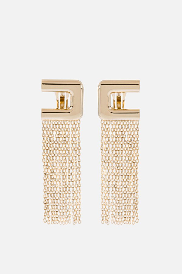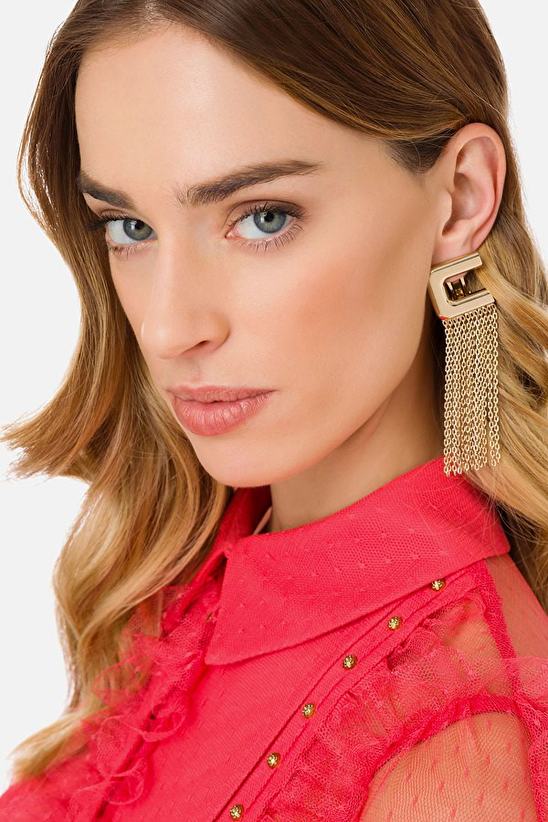 [025] - Orecchino logo con cascata di catene Elisabetta Franchi